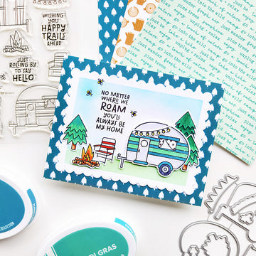 Bring your camper scenes to life with the Happy Trail-ers dies that coordinate with the Happy Trail-ers Stamp Set. Designed to perfectly cut out both retro trailers and the cozy campsite elements, these dies make it easy to build layered, detailed designs without the need for fussy cutting.