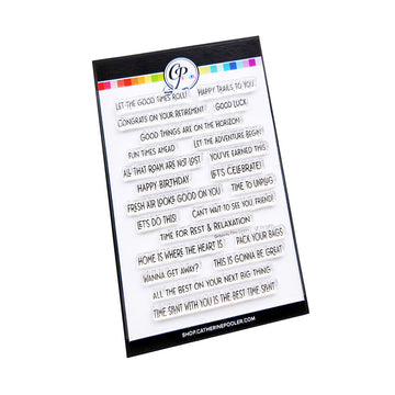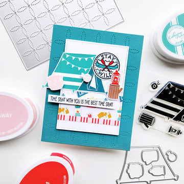 When it is time for rest and relaxation, the Getaway One Liner Sentiment Stamp Set is a go-to. Designed to pair perfectly with the Sentiment Banner and More Sentiment Banner Dies, these one-line sentiments cover multiple occasions including retirement, general celebrations, friendship, and wishing someone well on their next big adventure.