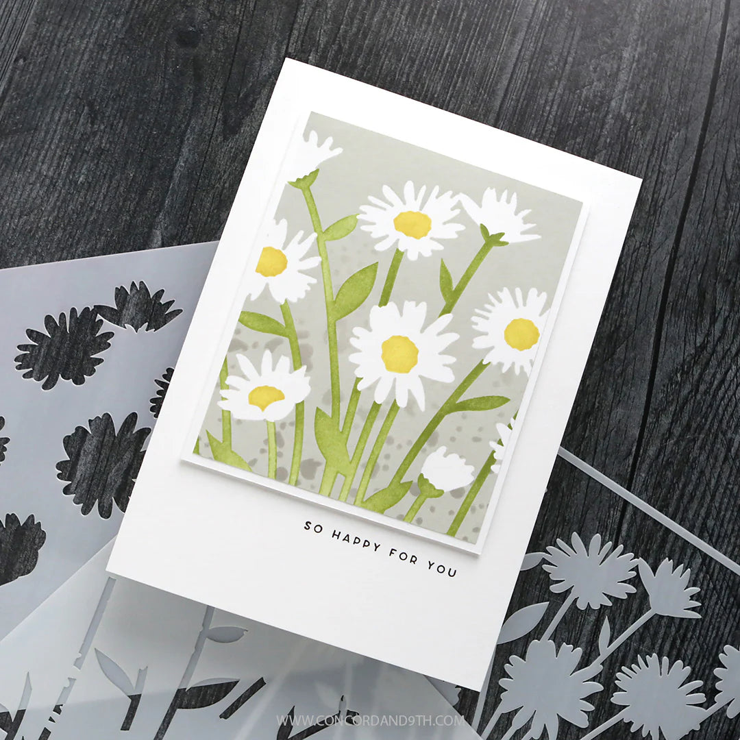 Build a colorful daisy scene! The Daisy Bouquet Stencil Pack includes four, including one to create a background around the flowers. Four 6" x 6" stencils