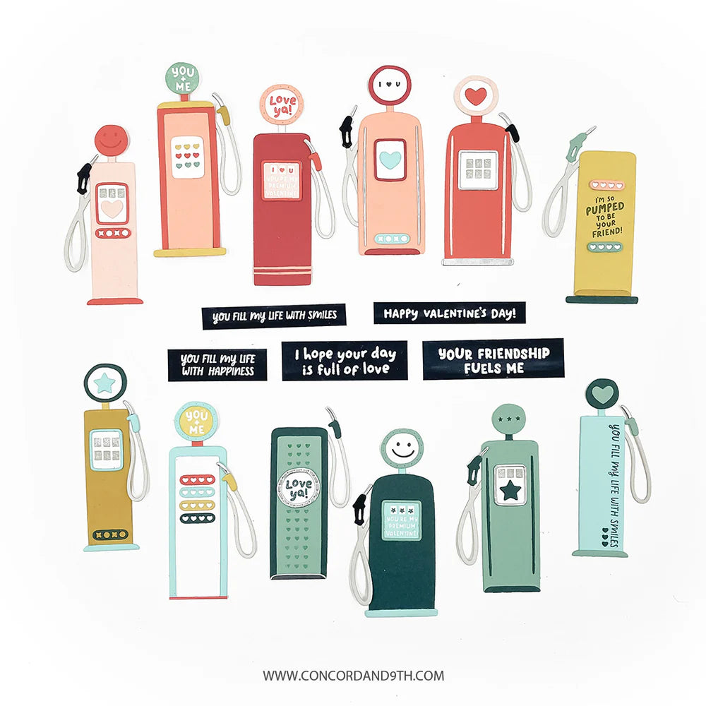 Fill your cards up with all sorts of charm when you create with the new Fueled with Love Dies! Piece together adorable retro-inspired gas pumps that are perfect for Valentine’s Day, anniversaries, encouragement, and everyday “thinking of you” cards. Mix and match the dies to build colorful pumps, then add in sentiments and tiny accents with the coordinating Fueled With Love Stamp Set to finish your design. 20 pieces.