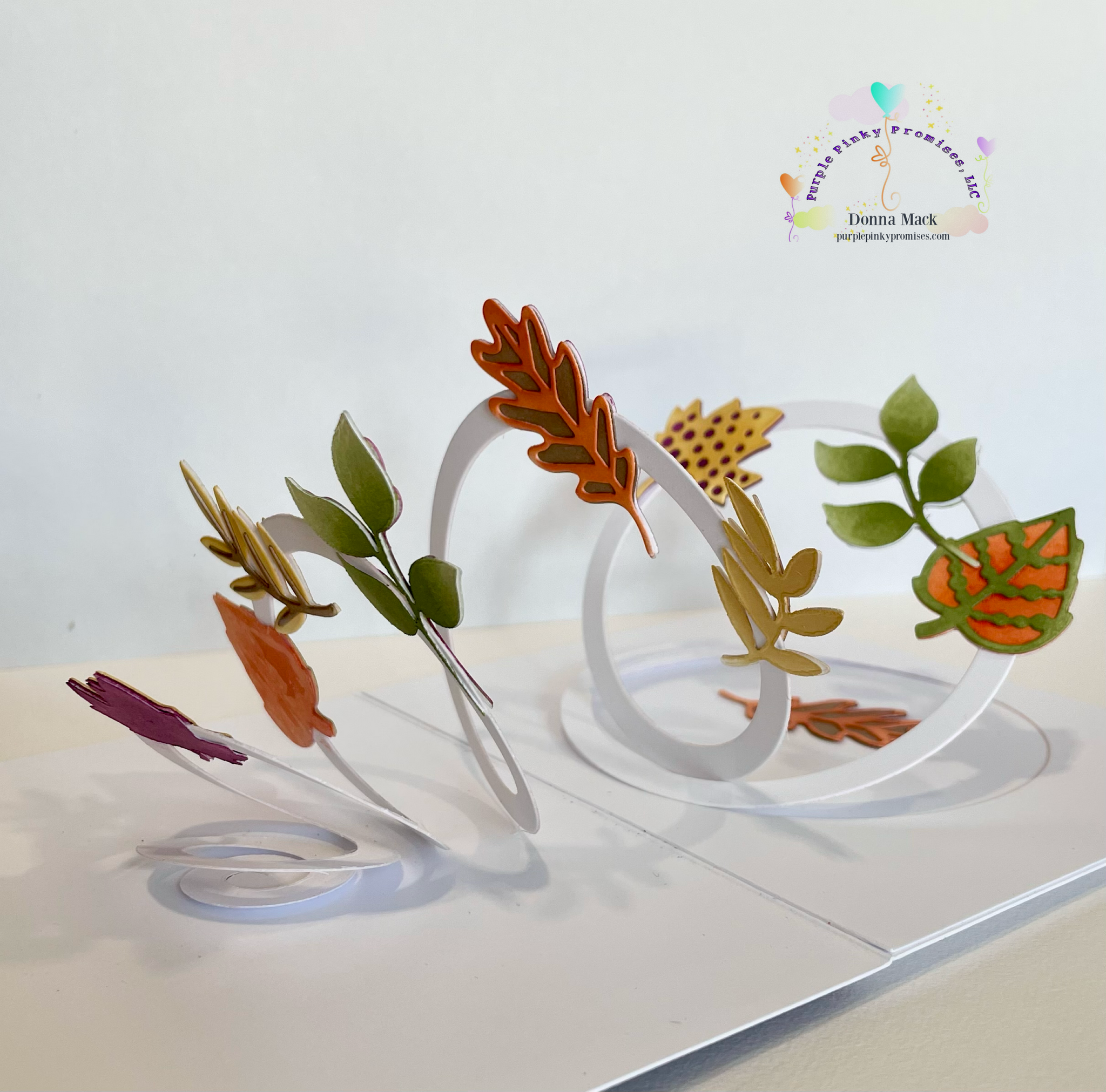 We will make one card. This card is a fun interactive card with a pop of fall leaves that spring up when you open it.
